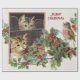 Vintage holly cats and bird christmas holiday greeting card