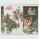 Vintage holly cats and bird christmas wrapping paper