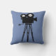 Decorative Accent Pillow with vintage Hollywood advertisement on front and old movie camera on reverse.