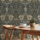Elevate your home decor with this stunning Peel & Stick wallpaper, featuring a vintage Honeysuckle pattern that draws inspiration from the timeless designs of William Morris. This exquisite wallpaper showcases an intricate floral motif with lush leaves and delicate flowers, set against a rich, deep blue background. The colour palette includes soft beiges, muted golds, and subtle greys, creating a harmonious and elegant look. Ideal for adding a touch of classic beauty and sophisticated charm to any space, this wallpaper is easy to apply and remove, making it perfect for both renters and homeowners. Embrace the essence of the Arts and Crafts movement with this beautiful, nature-inspired design.
