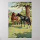 Beautiful and touching print of a mare and stallion meeting for the first time. Could it be love at first sight? This is a vintage image made into a lovely print