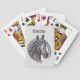 Add a hint of your love for horses to your next card game with this personalised deck of cards. The vintage sketch features a black and white horse with beautiful mane along with a horseshoe against a light grey background. Your name appears above the image and can easily be personalised.