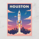 Celebrate Houston’s space legacy with this colourful retro‑style postcard featuring a rocket launch over the city skyline, vibrant sunset‑to‑night gradient sky, and bold “HOUSTON” typography – perfect for collectors, space enthusiasts, and vintage travel art lovers.