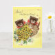 A vintage greeting card image features two cute kittens who have turned over a basket full of yellow and white flowers. The front of the card says, "Hello! How are you today?" The message inside the card is "Just thinking of you and dropping a line to hope you are well and that everything’s fine."
