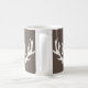 Vintage hunting deer monogram antlers travel mug. Rustic hunter design monogrammed with name initial letter. Personalizable for dad, father, mum , mother, husband, wife, boyfriend, girlfriend etc. Country chic logo coffee mug. Brown and white or custom background colour. Also nice for hunting theme wedding.