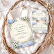 A refined dusty blue hydrangea design framed in an elegant baroque-inspired composition. Voluminous hydrangea clusters in soft powder and periwinkle tones are paired with creamy ivory florals and muted sage greenery, creating a balanced, symmetrical garden frame. The warm parchment-style background adds a subtle antique touch while keeping the overall look airy and sophisticated. Ideal for a timeless celebration with a romantic, elevated aesthetic.