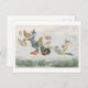 This postcard is a reproduction of a vintage children's book illustration showing a fairy queen driving a chariot through the air pulled by butterflies.
