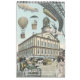 Vintage illustration science fiction calendar featuring a variety of steam punk urban city scenes from the future, futuristic cars and other flying machines, people, etc.