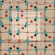 Vintage Inspired MidCentury Modern Retro design in hues of reds, teal, brown, black, and gold. Circles, stripes and geometric shapes.
