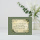 Traditional Irish blessing on parchment label with fancy scrolled border and edging with shamrocks on a green floral background.