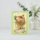 Antique St. Patrick's Day greeting card art featuring gold Irish harp, wreath with green ribbon, greeting, rustic background and scroll with verse in gold script.