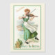 Festive vintage St. Patrick's Day greeting featuring pretty Irish lass in green dress playing the fiddle with rural background and Erin Go Bragh message.