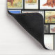 Vintage Irish Setter Cigarette Cards Mousepad. Assorted vintage cigarette cards featuring Irish Setters against a black background on a mousepad.