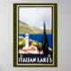 This vintage poster welcomes you to the lake region of Italy.