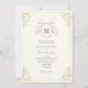 This elegant vintage ivory wedding invitation features a timeless heirloom design with delicate floral line art, refined typography, and a classic monogram crest. The soft ivory background and balanced layout create a sophisticated, traditional look inspired by European wedding stationery and formal celebrations.