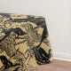 I am very pleased with this purchase. The quality is good, it is heavy and the image decorating it is brilliant and very eye-catching. When I first laid eyes on this tablecloth, still folded and in the transparent covering, it brought a smile to my face and I knew right away it was a good choice. A few days later my wife replaced our old tablecloth with this little gem and was quite satisfied. She noted that it is thick and fits the table very well with just enough hang over (although our dining table is extended by a traditional leaf which we keep in place even if we are not having guests over) and stays put instead of blowing all over the place. The image decorating this tablecloth is brilliant and very eye-catching. It looks even better than it appeared online.