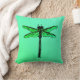 Vintage Japanese brush drawing of a dragonfly, digitally enhanced and coloured, in shades of emerald and blue-green, on a softly shaded ombre background throw pillow