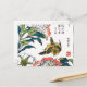 Vintage Japanese drawing, Peonies and Sparrow Postcard