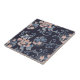 Traditional Japanese pattern featuring pink, blue and white flowers and vines on a dark blue background.