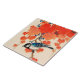 Ceramic tile in a vintage Japanese painting of a blue jay bird and wild grapevine, in shades of autumn orange and deep blue, on a light beige background, digitally enhanced