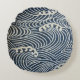 Vintage Japanese Textile, Wave Pattern Round Cushion