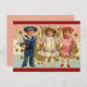 This postcard features a vintage illustration of kids celebrating the July 4th holiday. They are all dressed up in their finest clothing and, ready to celebrate Independence Day!