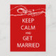 KEEP CALM AND Get Married with a unique twist to the ubiquitous quote "Keep Calm and Carry On" Funny Wedding Bachelorette Party or Bachelor Party Card. You choose background colours - change the background colour to any colour by clicking customise Further then edit, found at the bottom of layers view, Click edit next to colour box to choose from the swatches shown or enter you RGB Hex Code in the lower right hand field. Just search on the Internet for RGB Hex Code to find your colour and make a custom colour design.