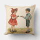 Vintage kids artwork on pillows that captures timeless childhood moments. A charming vintage-style illustration of children, perfect for nostalgic art and decor.