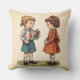 Vintage kids artwork on pillows that captures timeless childhood moments. A charming vintage-style illustration of children, perfect for nostalgic art and decor.