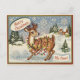 A cute deer wishes a merry christmas, cute vintage nostalgia kitsch postcard.