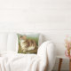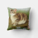 Pillow featuring a vintage kitten illustration. A cute tabby kitten hiding in a flower garden. A perfect gift for cat lovers and Victorian art collectors.