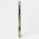 iPhone Case featuring an adorable kitten illustration. A white kitten with black stripes and big eyes sits on its back legs in a garden of pink, yellow, and white flowers. A wonderful gift for cat lovers and Victorian art enthusiasts!