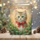 Send holiday cheer with this charming Christmas card featuring a sweet kitten with big green eyes, adorned with a festive red bow and surrounded by evergreen branches and berries. The soft watercolor style and warm background make it the perfect choice for cat lovers and anyone who adores whimsical, heartwarming holiday greetings.