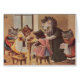 A vintage illustration by Arthur Thiele features a group of four kittens in dresses and smocks sitting around a table while they do various types of needlework. A grandmotherly-looking cat in a black dress appears to be teaching them. One kitten is using yarn to either knit or darn a sock. Two others have tea towels and appear to be doing needlepoint on the towels. The German artist, Carl Robert Arthur Thiele (1860-1936) commonly went by the name Arthur Thiele. He was an illustrator of books, sheet music and postcards. He was famous for his comical anthropomorphic animals dressed in clothing and depicted in human-like scenes. Dachshunds were a favourite subject of his. In addition to animals, other subjects he illustrated were sports postcards, vegetables brought to life, snowmen, bathing beauties, and WW1 era propaganda postcards. The Internet is full of references confusing Carl Robert Arthur Thiele with another German painter of his time named Julius Arthur Thiele who painted landscapes. They are not the same artist. This card is blank inside for your own message.