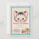 Sweet and charming vintage Kitty Cat Birthday party invitation with a vintage kitten and her friends on a branch with antique (faux) background. Great for a Boy!