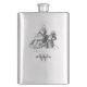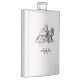Elegant stainless steel flask, with a vintage illustration of a knight, in full armour, on horseback. Personalise the grey one letter monogram and name, to suit your needs. Great personalised gift idea.