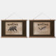 Left and right halves of a label from a can of mythical Kodiak Brand Sockeye Salmon circa 1879. The monochrome (brown) image features a Kodiak Bear (Ursus arctos middendorffi) and a Sockeye Salmon (Oncorhynchus nerka). Text reading "Kodiak Brand Sockeye Salmon" and other information about the mythical Afognak Packing Company and how to prepare the fish.