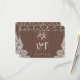 Unique card design featuring string lights, old lantern with marsala flowers bouquet on a burlap with lace corners background. Use Customise tool to add your info. See, also, my Vintage Lace Collection.