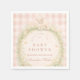 A soft vintage baby shower design inspired by classic storybook illustrations. Gentle wildflowers form a delicate wreath around a sweet lamb, finished with a blush ribbon bow and a warm gingham background that adds a cosy nursery feel. The airy watercolor style and muted pastel palette create an elegant yet whimsical aesthetic perfect for celebrating a new arrival. Designed for parents who love timeless, cottagecore-inspired baby shower themes with delicate botanical details.