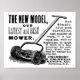 This vintage lawn mower newspaper advertisement features a lovely hand drawn illustration of a retro push lawnmower and old time typeface explaining how wonderful the gadget is. All composed in a funky, old fashioned magazine ad.
