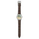 I was uncertain about the size being too small but it looks good. The case looks like aluminum (not shiny) and the time is easy to see. I changed the band because the leather doesn't go with my lifestyle.a. Exactly what I expected, nice yellow. It grabs peoples attention.