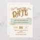 Matching Envelope: Each save the date card comes with a coordinating envelope, designed to look like an old-fashioned mailing envelope. The envelope features faux stamps and postmarks, enhancing the vintage look and feel.