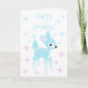 Both the message on the front and the inside of this holiday greeting card is ready for your own custom touch or can be left as is. Features a cute vintage-inspired illustration of a baby deer or fawn in pastel sky blue set against a white background with retro pink and light blue stars accents.On the inside the pink text is ready to be personalised by you. This year send some blast from the past cards that were inspired by Christmas decoration from the 1950s and 1960s.