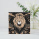 Vintage Lion Portrait, this design features a vintage illustration of a portrait of a lion with a calm and superior appearance. The background is a black and white safari landscape with trees and mountains. The overall image has an art deco style.