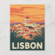 Capture the timeless beauty of Portugal with this vintage-style postcard featuring the iconic cityscape of Lisbon. The artwork showcases the city’s charming rooftops and historic buildings, including the prominent dome of the National Pantheon, all set against a stunning, colourful sunset. The design evokes a classic, retro travel poster feel, perfect for a keepsake or a note to a friend. This postcard is ideal for anyone who loves Portugal, European travel, or nostalgic art.