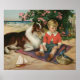 Vintage Little Boy, Collie and Bluebirds Poster