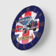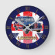 This digital drawing features one of the most iconic symbols of London, UK: the vintage black taxi with the Union Jack in the background. Note: the golden metallic look it is simulated in the artwork. No actual metal will be used in the printing of this wall clock.