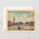 A beautiful vintage-style postcard featuring the iconic London skyline, including the Houses of Parliament and the famous Big Ben (officially Elizabeth Tower) overlooking the River Thames. The classic, faded colours and texture give this image an authentic retro travel poster feel. It's perfect for sending a thoughtful message, commemorating a trip, or framing as a small piece of city art. A great design for anyone who loves England, travel, or classic European cityscape views.