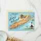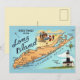 Colorfully illustrated, vintage map of Long Island, New York. It's an old postcard repurposed now on a new 5x7 big postcard.