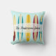 Square vintage longboards themed throw pillow with customisable text.